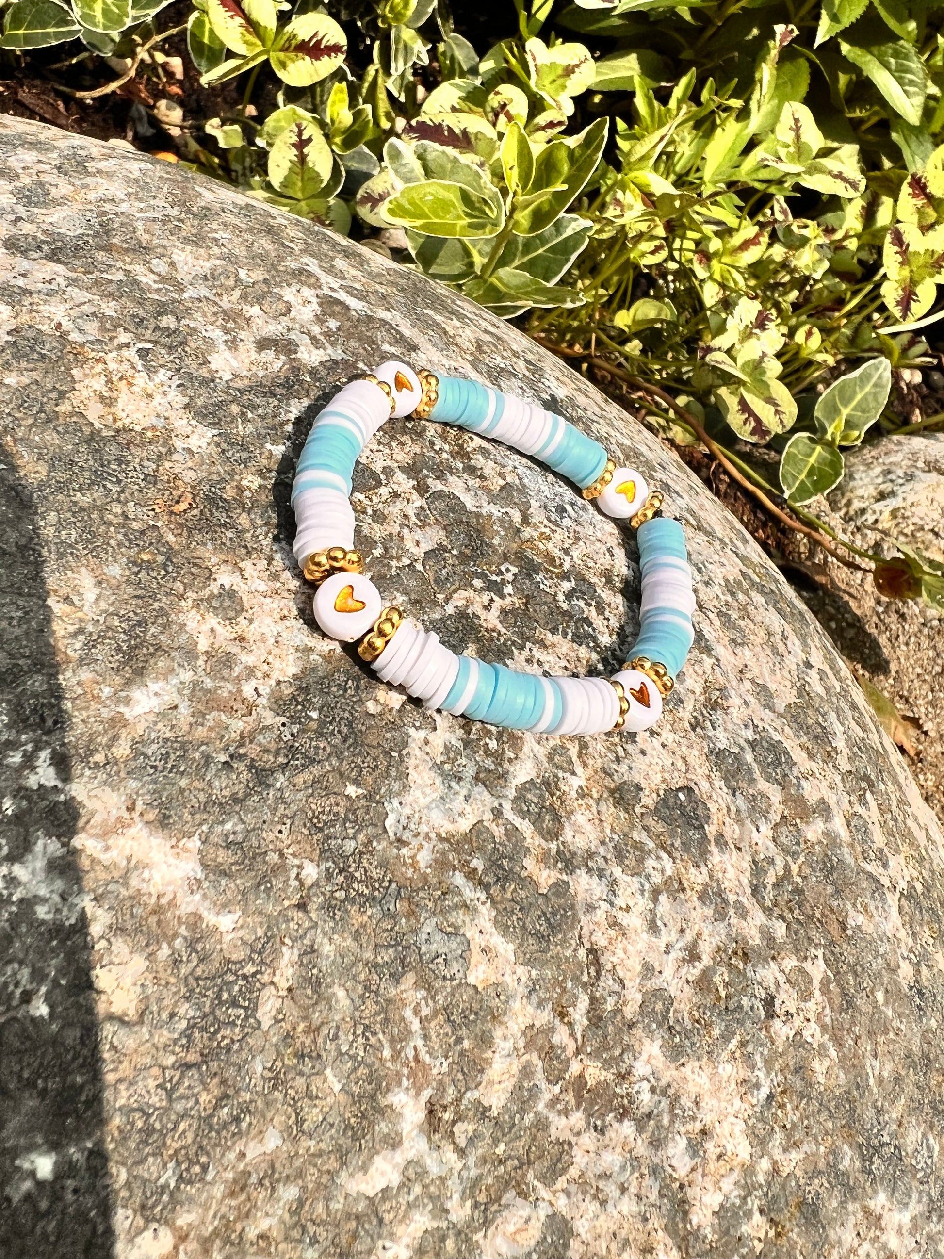 Blått armbånd med hjerter💛🩵
