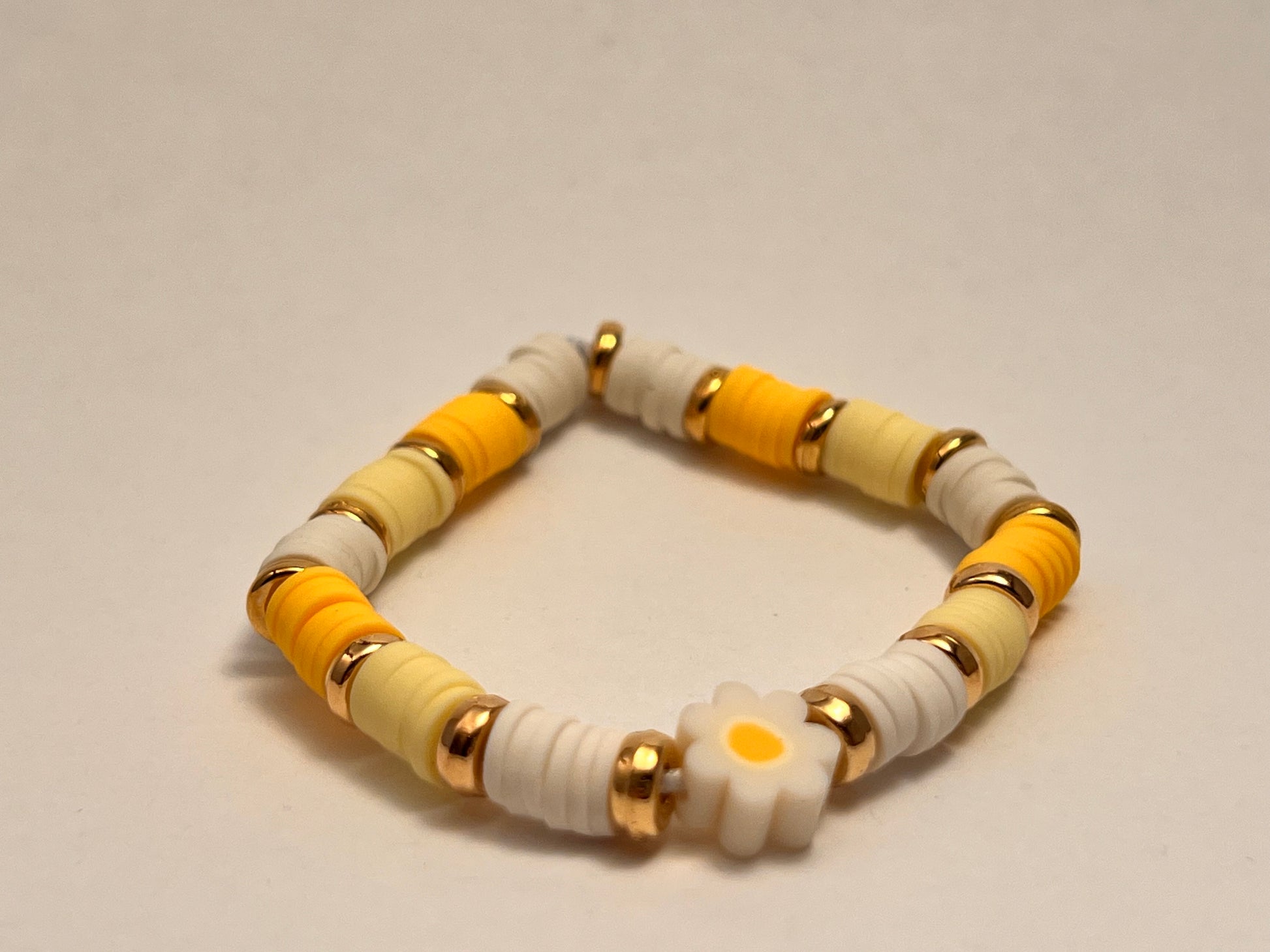 Gult armbånd med blomst.