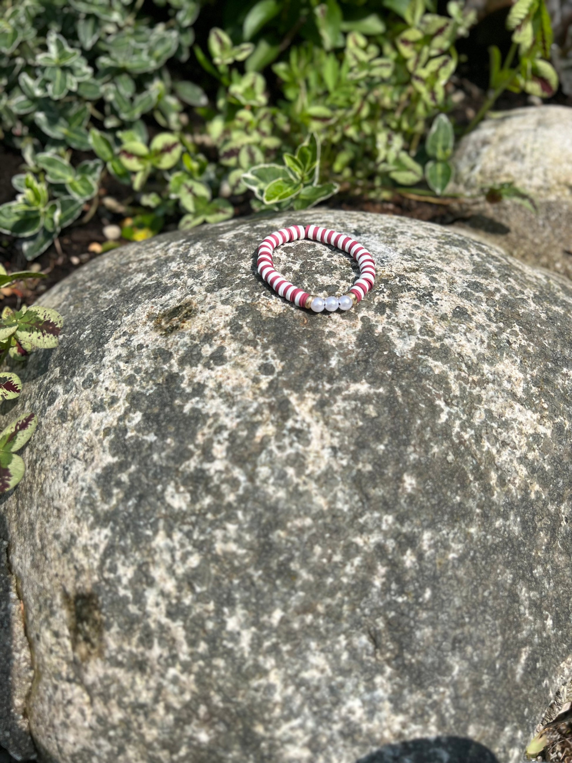 Rosa/lilla armbånd med 3 perler.